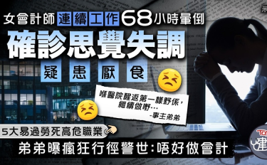 一位女會計師因連續工作68小時而暈倒,最終被診斷為思覺失調。即使在入院後,她醒來的第一件事仍是繼續工作。這種高強度的工作壓力不僅影響心理健康,甚至在患腸胃炎時,她也只能在廁所工作,平時連吃飯的時間都沒有。這些情況凸顯了適當保險保障的必要性。健康保險、心理健康支持和收入保障險可以在關鍵時刻提供財務支援,讓面對健康問題的辦公室工作人士不至於陷入困境。